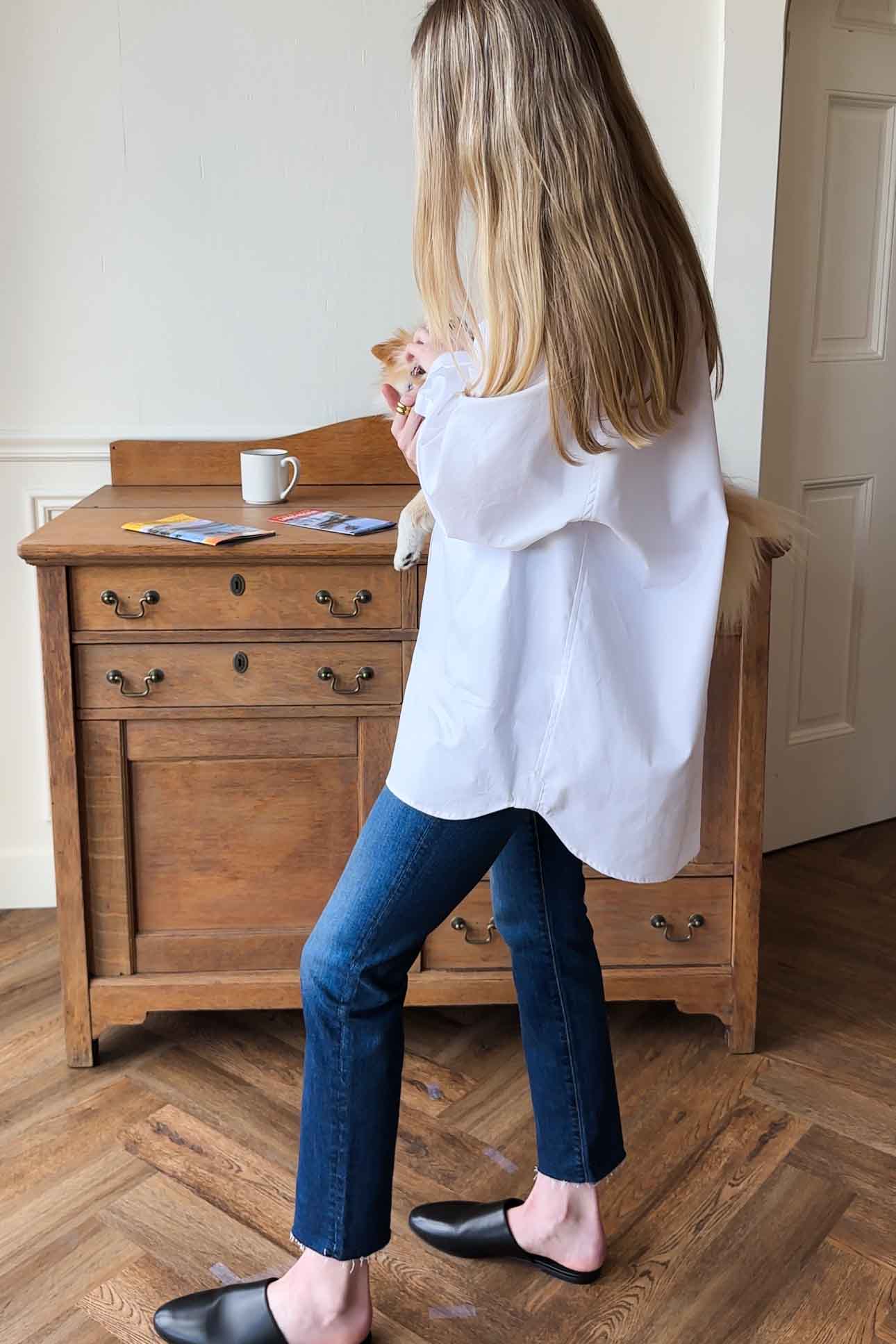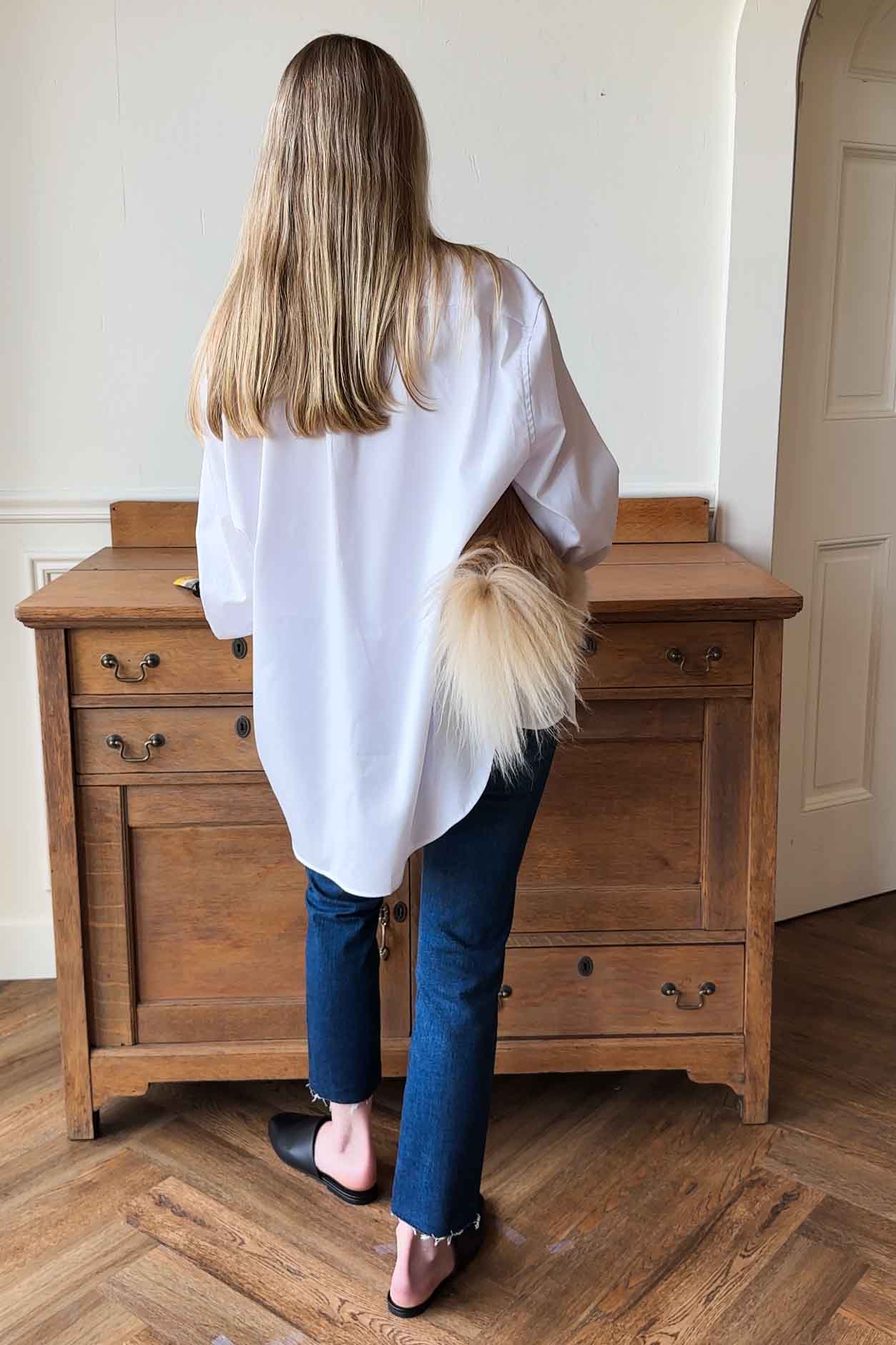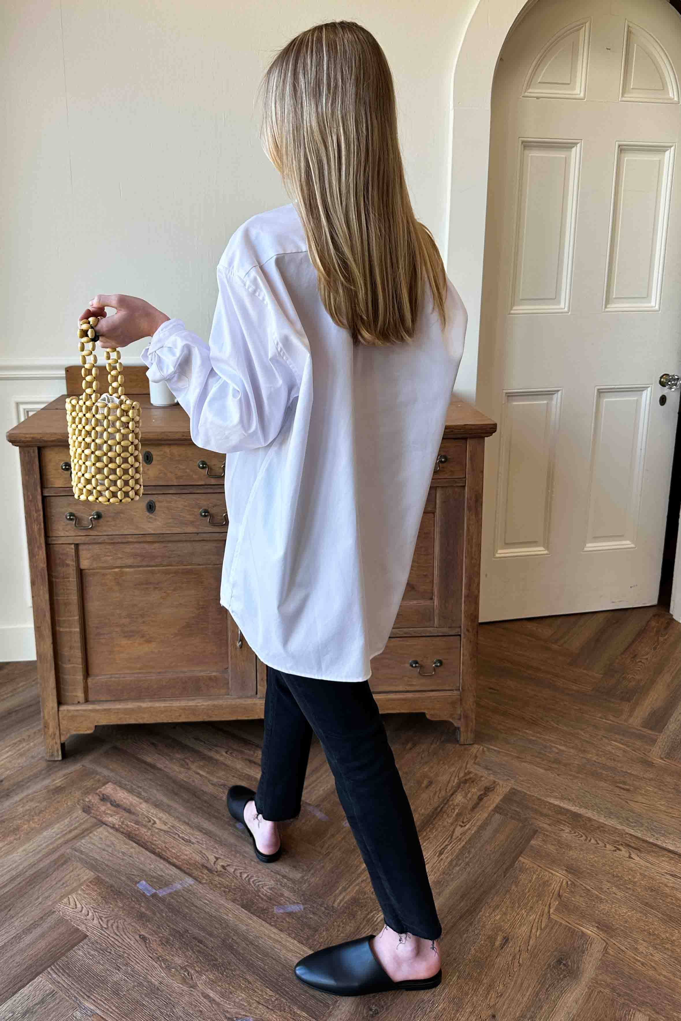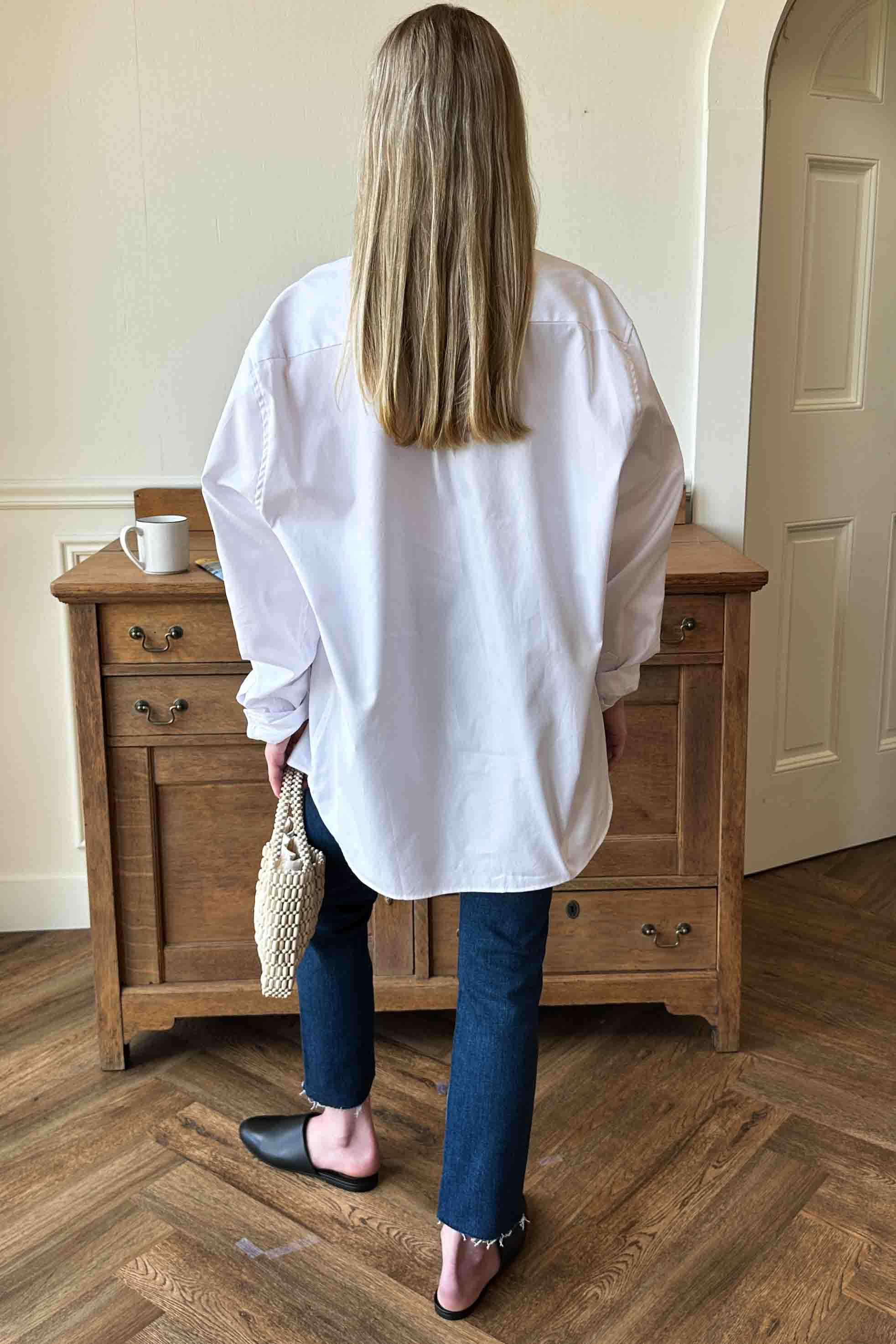Linen viscose Menswear inspired button down Hand embroidered chest pocket detail Button closure at cuff Full length sleeves Subtle shirt hem Hand wash cold, gentle + line dry Made in...