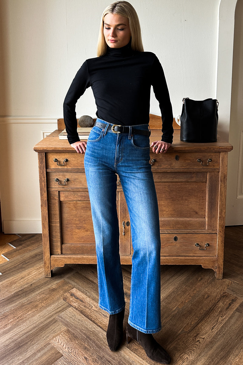 The Treasure Bell jean puts a new twist on an iconic 1970's silhouette made modern through fit and fabric, offered in a premium Italian stretch denim. This high rise retro...