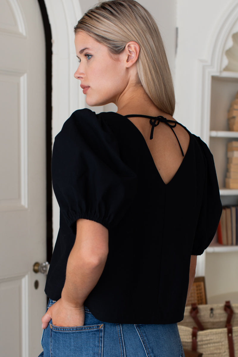 Black Silk Velvet, comfy-polish + party-ready. with Jeans. Luxe-Comfortable, special, festive. Made in NYC. Silk velvet Puff shoulder 7" Balloon sleeve w/ elastic cuff V front + back Lined Dry...