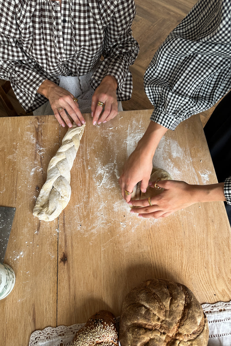 Cotton Hand block printed w/ low impact dye Yoked neckline w/ double ties and hook & eye closure Ladder lace detailing Gathered little puff shoulder Full length sleeves with elastic...