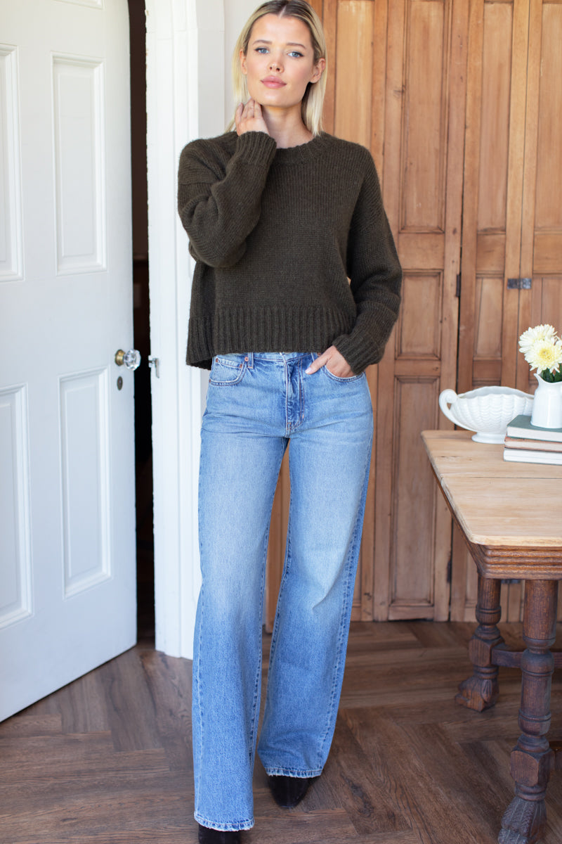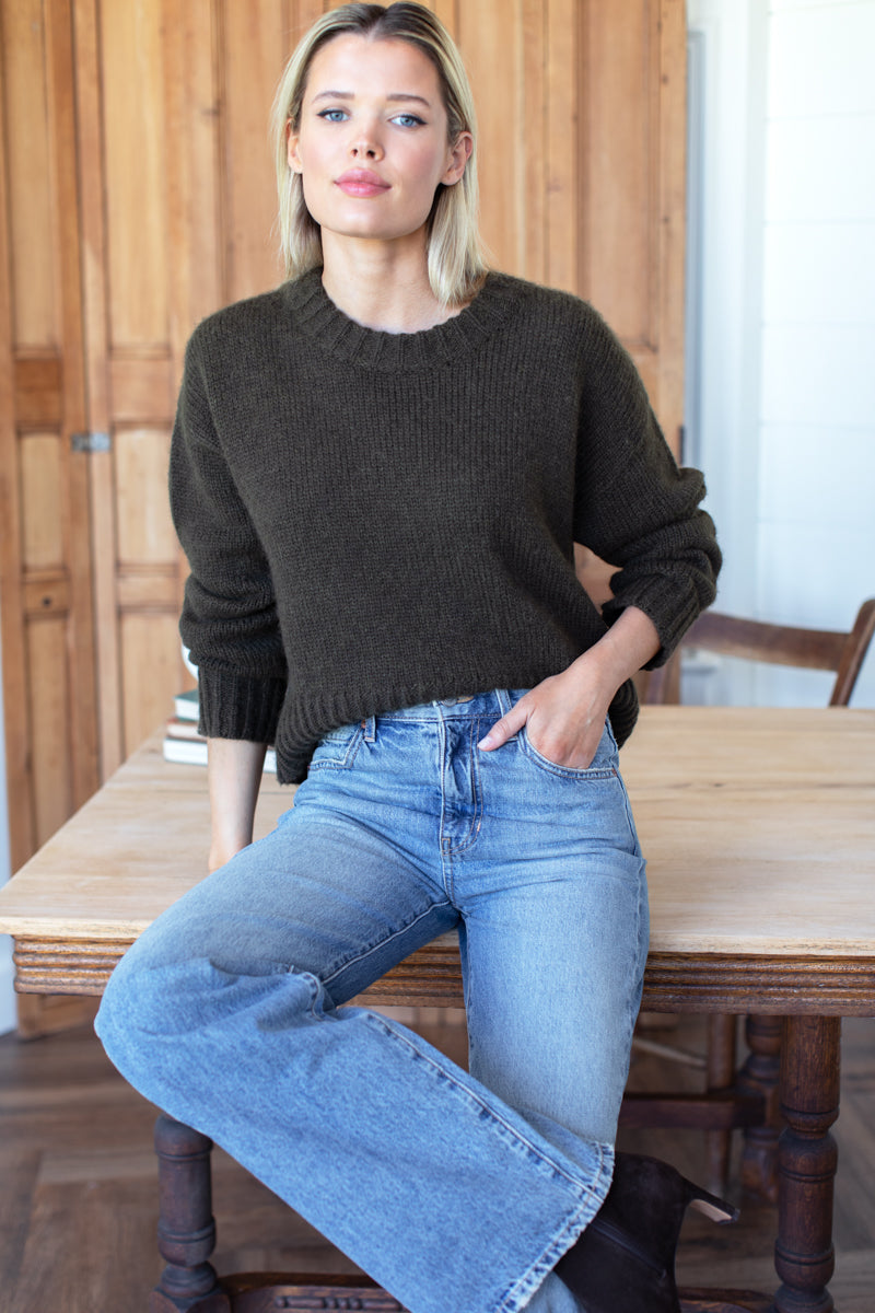 A soft, cozy crewneck sweater is a cold-weather wardrobe staple. Slightly cropped, boxy silhouette is versatile, easy to wear & great for layering. Alpaca Merino Drop shoulder Crew neckline Made...
